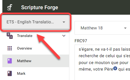 Haga clic en el icono del menú Scripture Forge:
