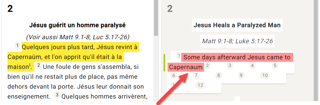 Por ejemplo, si se resaltara "Capernaum y dicen":