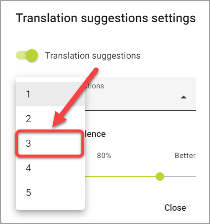 Aparecerá el cuadro de diálogo Configuración de las sugerencias de traducción: