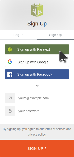 Then click Log in with Paratext or Sign up with Paratext, depending on which button you clicked previously: